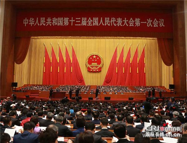 十三屆全國人大一次會議開幕會在北京人民大會堂舉行。攝影:沈湜