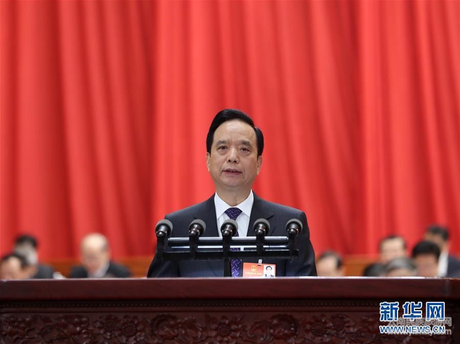 3月13日,十三屆全國人大一次會議在北京人民大會堂舉行第四次全體會議。受十二屆全國人大常委會委托,全國人大常委會副委員長李建國向十三屆全國人大一次會議作關(guān)于中華人民共和國監(jiān)察法草案的說明。新華社記者王曄 攝