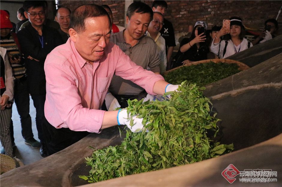 中國(guó)茶葉有限公司總經(jīng)理王貴卿在為曬青毛茶殺青