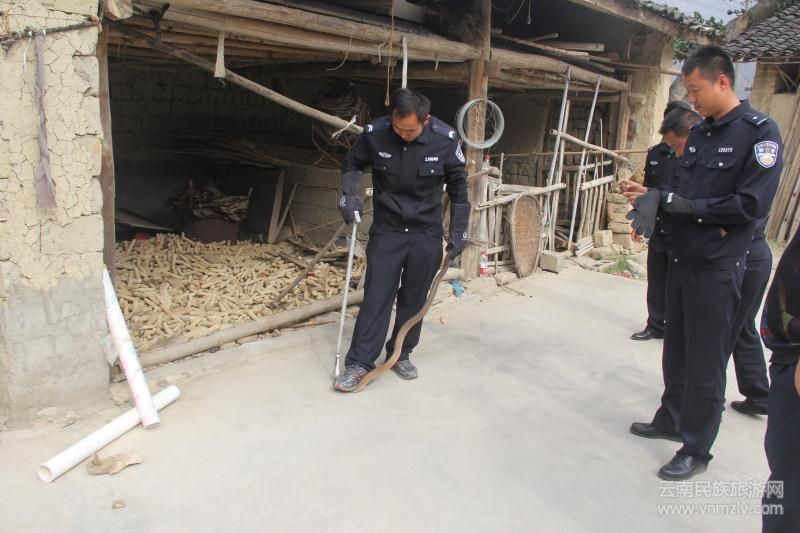 2月20日14:37時,隆陽區(qū)森林公安局高黎貢山自然保護區(qū)派出所民警接群眾電話報警稱:潞江鎮(zhèn)新寨村五組村民家中發(fā)現(xiàn)3條蛇,請森林公安前來處理。接警后,派出所民警立即趕往現(xiàn)場。