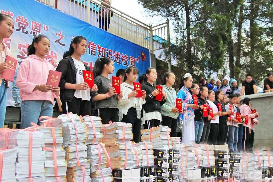 活動中,甲寅中學(xué)的各個班級班長受聘為金融及征信知識宣傳志愿者,他們欣喜地接過猩紅的聘書。人民銀行紅河縣支行行長王靜希望同學(xué)們從現(xiàn)在做起,從自身做起,自覺學(xué)習(xí)、宣傳征信知識,并發(fā)揮輻射作用,當(dāng)好征信宣傳員,形成誠實守信的良好氛圍。