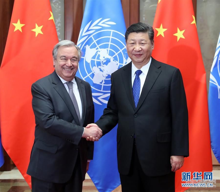 4月8日,國家主席習(xí)近平在北京人民大會堂會見聯(lián)合國秘書長古特雷斯。新華社記者 劉衛(wèi)兵 攝