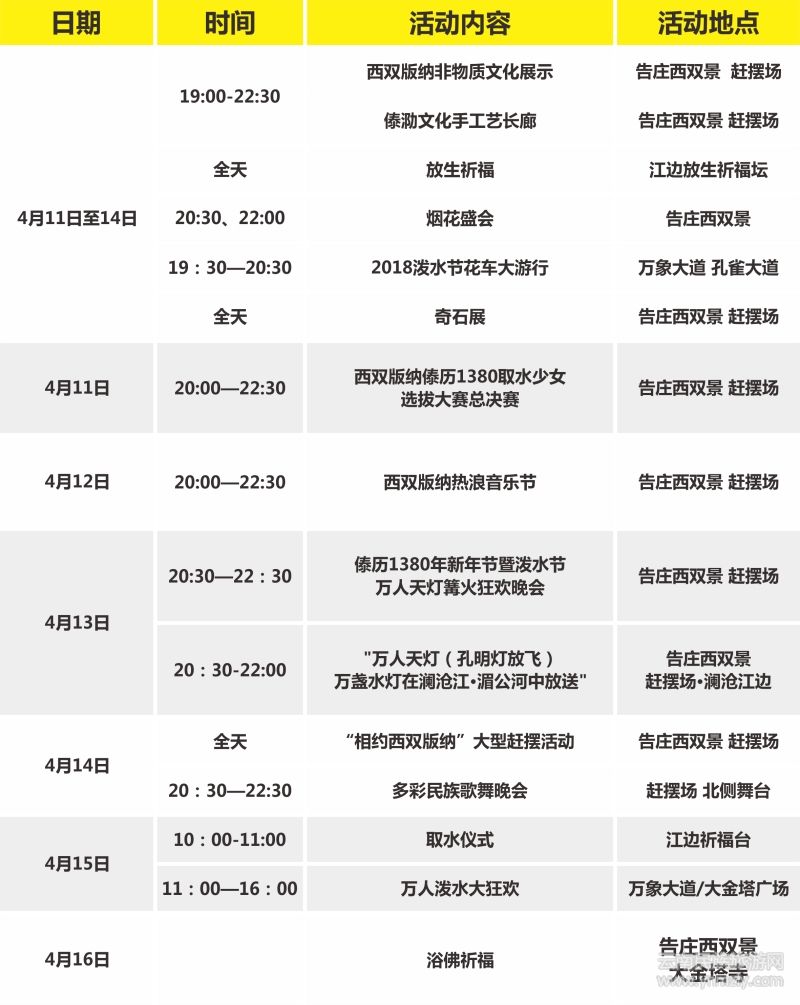 ● 潑水節(jié)來告莊西雙景體驗(yàn)不一樣的傣歷新年 ( 2018-04-09 )