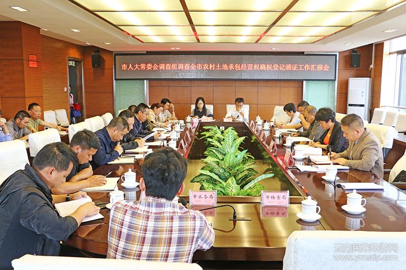 4月26日至28日,蒙自市人大常委會副主任鄧愛玲率調研組,對蒙自市農村土地承包經營權確權登記頒證工作情況進行調查。并召開工作匯報會,副市長楊云鴻參加匯報會。