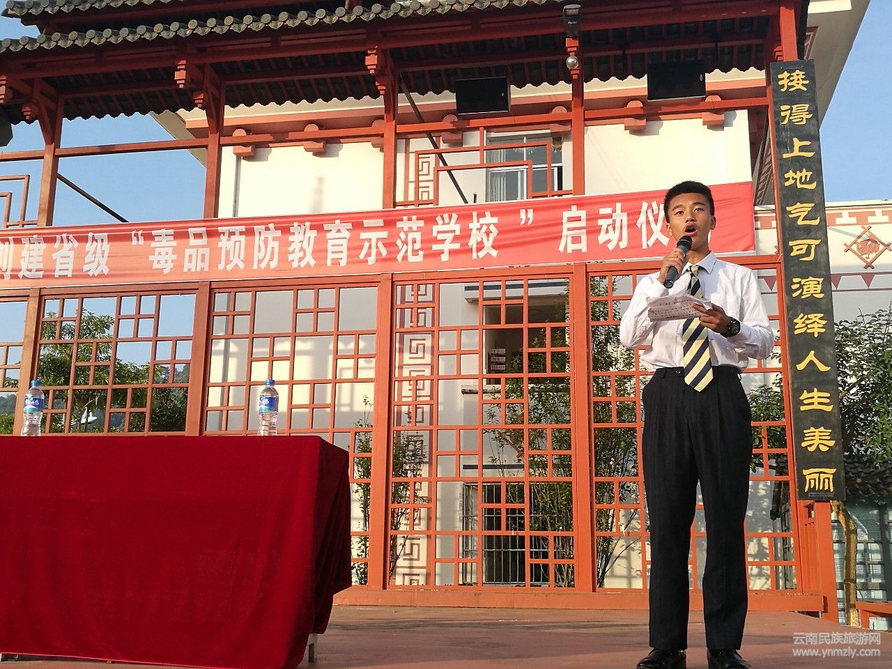 為進(jìn)一步貫徹落實(shí)《云南省青少年毒品預(yù)防教育三年規(guī)劃(2016-2018)》,為全縣青少年學(xué)生提供一個(gè)經(jīng)?;?、常規(guī)化的禁毒法制教育場所。5月7日,墨江縣創(chuàng)建省級“毒品預(yù)防教育示范學(xué)校”啟動(dòng)儀式在民族學(xué)校舉行??h禁毒辦、縣公安局、縣教育局、民族學(xué)校相關(guān)領(lǐng)導(dǎo)及該校初中部2000余名師生參加了啟動(dòng)儀式。