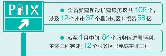 高速路服務(wù)區(qū)不僅是休息的驛站、服務(wù)的載體,更是旅游的名片、形象的窗口。一年前,我省把高速路服務(wù)區(qū)整治提升作為全省交通運輸工作的重要任務(wù),切實抓緊抓好。省交通廳積極貫徹落實部署,研究制定高速公路服務(wù)區(qū)整治提升一年行動計劃,深入開展改擴建和新建工程、基礎(chǔ)設(shè)施提升、環(huán)境衛(wèi)生整治。根據(jù)省政府統(tǒng)一規(guī)劃,全省新建和改擴建服務(wù)區(qū)共106個,其中改擴建80個,新建26個,涉及12個州市37個縣(市、區(qū)),投資概算58億元。