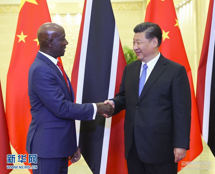 5月15日,國家主席習(xí)近平在北京人民大會(huì)堂會(huì)見特立尼達(dá)和多巴哥總理羅利。新華社記者 謝環(huán)馳 攝