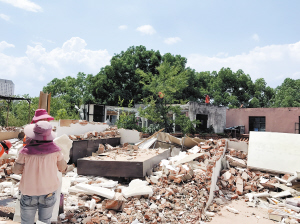 昨日一早,在翠湖公園南門旁的“三畝地”建筑群,外圍已經(jīng)開始圍擋,建筑內(nèi)的經(jīng)營活動(dòng)也已經(jīng)停止,部分工人正在拆除三樓的臨違建筑。按照規(guī)劃,除了1900平方米的主體仿古建筑和一座臨湖的亭子之外,三層加蓋的房屋和周邊搭建的臨時(shí)建筑都將被拆除,空出的面積將成為一條直通翠湖公園的步行道路和公共區(qū)域,為市民和游客提供一個(gè)更寬闊的觀景點(diǎn)。
