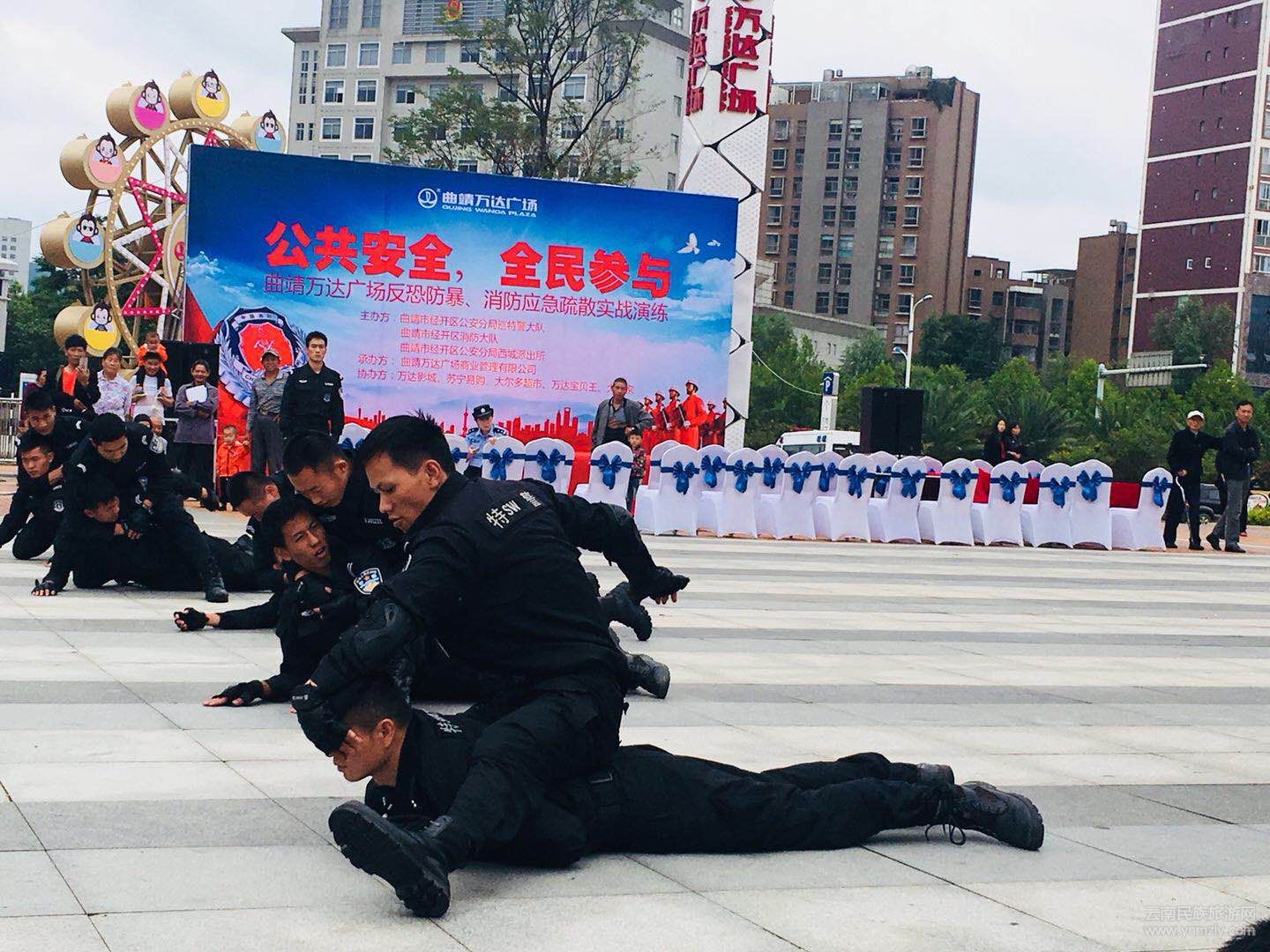 為進(jìn)一步構(gòu)建和諧警民關(guān)系,全方位展示公安特警和消防官兵的良好形象,開發(fā)區(qū)分局于曲靖萬達(dá)廣場舉行了“警營開放日”活動。整個活動以“公共安全·全民參與”為主題,分為“警務(wù)技能展演、消防滅火演練、武器裝備展示、法制宣傳咨詢”等多個內(nèi)容。萬達(dá)廣場各入住商家、周邊單位和居民1200余人參加了活動。