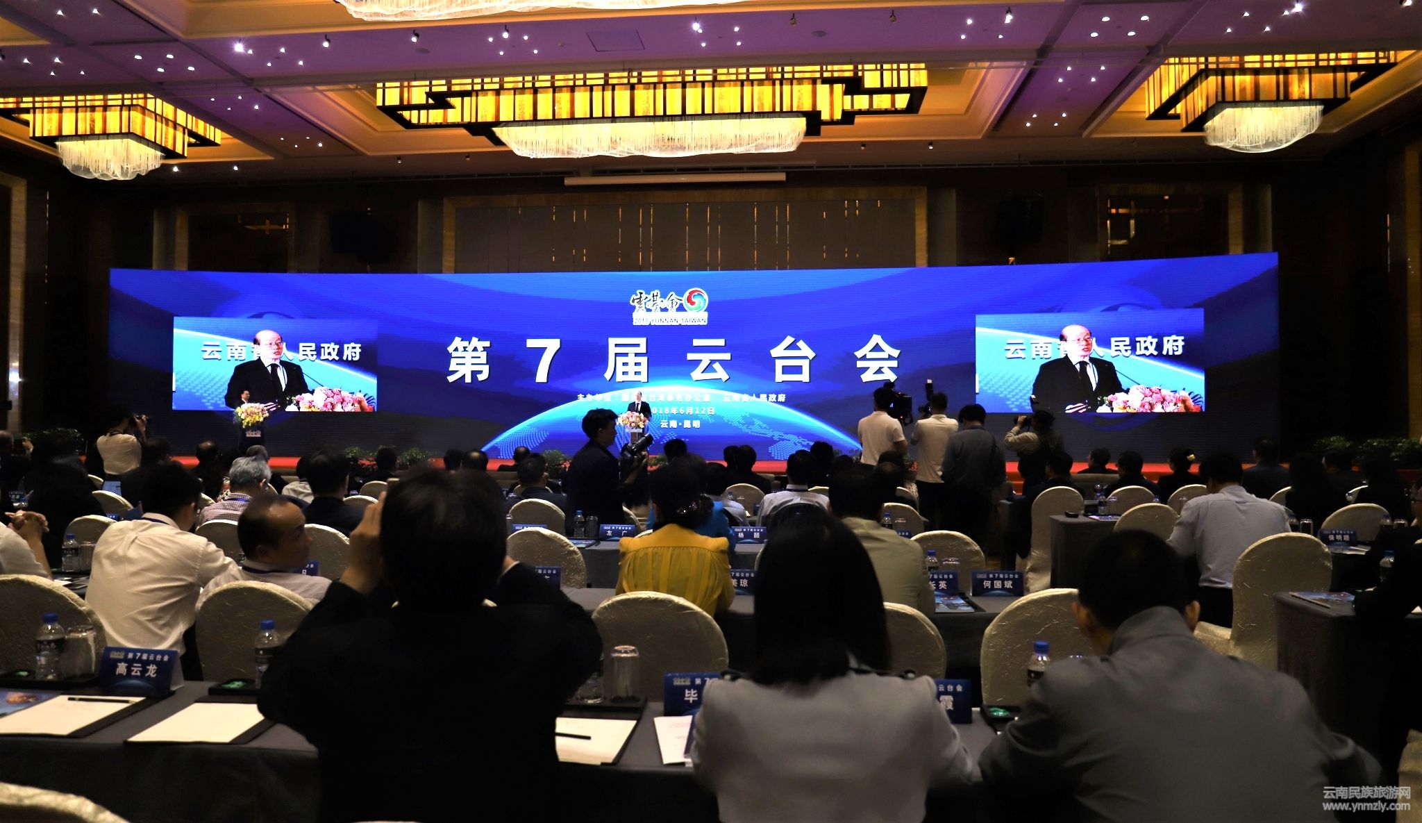 6月12日,由國務院臺灣事務辦公室和云南省人民政府主辦的主題為“共享“一帶一路”機遇,深化云臺融合發(fā)展,推進輻射中心建設”的第7屆云臺會在昆舉行。中共中央臺辦、國務院臺辦主任劉結(jié)一,中共云南省委副書記、省長阮成發(fā),省人大常委會副主任李培、王樹芬,副省長張國華;中華青雁和平教育基金會董事長、中國國民黨前主席洪秀柱,全國臺企聯(lián)會長王屏生,臺灣工業(yè)總會理事長王文淵,臺灣電電工會董事長郭臺強等臺灣嘉賓出席開幕式。出席本次云臺會的兩岸的政要、企業(yè)家、專家學者、知名人士多達800余人。阮成發(fā)、洪秀柱、劉結(jié)一先后在開幕式致辭。