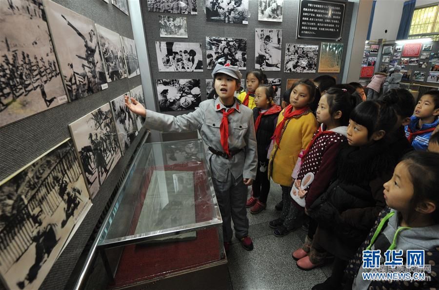 2014年11月28日,在陜西省延安育才紅軍小學(xué)校史室,小講解員胡馨予在為同學(xué)講解校史。新華社記者 丁海濤 攝