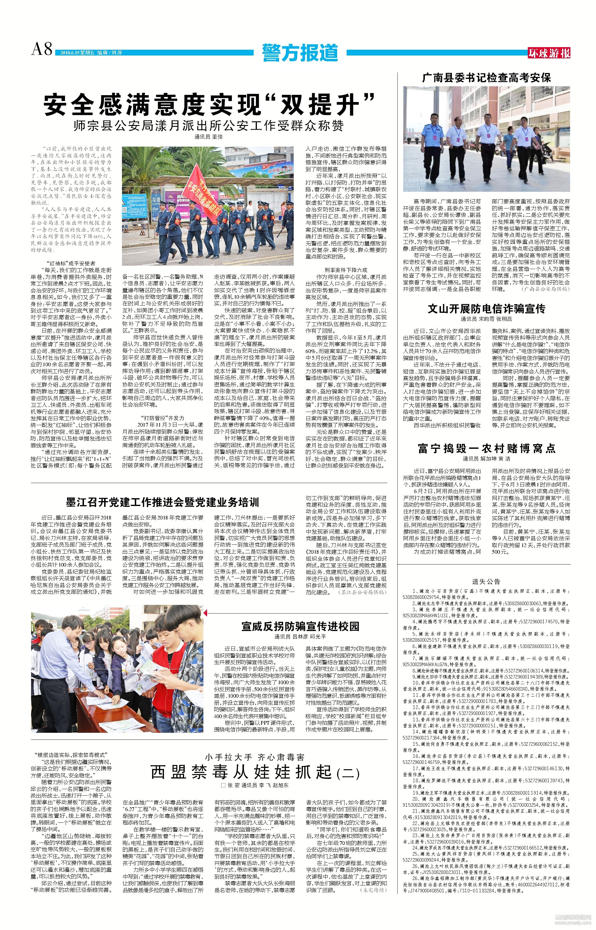 宣傳活動得到了學(xué)校師生的積極響應(yīng),學(xué)校“校園新聞”欄目組專門參與拍攝了活動照片、視頻,并制作成專題片在校園網(wǎng)上展播。通訊員 呂林彥 邱光平(文章來源環(huán)球游報(bào)2018年6月15日第1144期A8版)