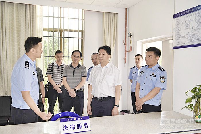 近日,省公安廳黨委委員、副廳長胡水旺在玉溪市公安局黨委委員、黨委副書記蘇少明的陪同下,深入江川區(qū)檢查指導(dǎo)掃黑除惡專項(xiàng)斗爭工作。江川區(qū)委常委、政法委書記蔣文,副區(qū)長、市公安局江川分局局長溥恩武,政委張文紅和在家的黨委班子成員參與陪同檢查工作。