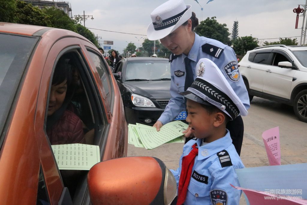 5月1日,交警大隊(duì)邀請部分民(輔)警子女一道身著小交警服飾參加“三月街民族特色交通安全”宣傳活動(dòng)?;顒?dòng)前學(xué)習(xí)了簡單的道路交通標(biāo)識(shí)標(biāo)牌和常見的交通手勢信號(hào),而后“小交警”們在交警叔叔阿姨帶領(lǐng)下正式“上崗”,分別在大理古城三月街各主干道、重點(diǎn)場所等開展了對(duì)行人、車輛“文明和不文明”交通行為宣傳活動(dòng)。整個(gè)活動(dòng)在濃厚好學(xué)的氛圍中進(jìn)行,通過活動(dòng)實(shí)踐,小朋友們親身體驗(yàn)“崗位”的意義,更加了解到交警工作的辛苦和重要性,從而也提升了自我安全意識(shí)和文明參與交通意識(shí),最終達(dá)到“小手牽大手、文明一起走”的社會(huì)目的。