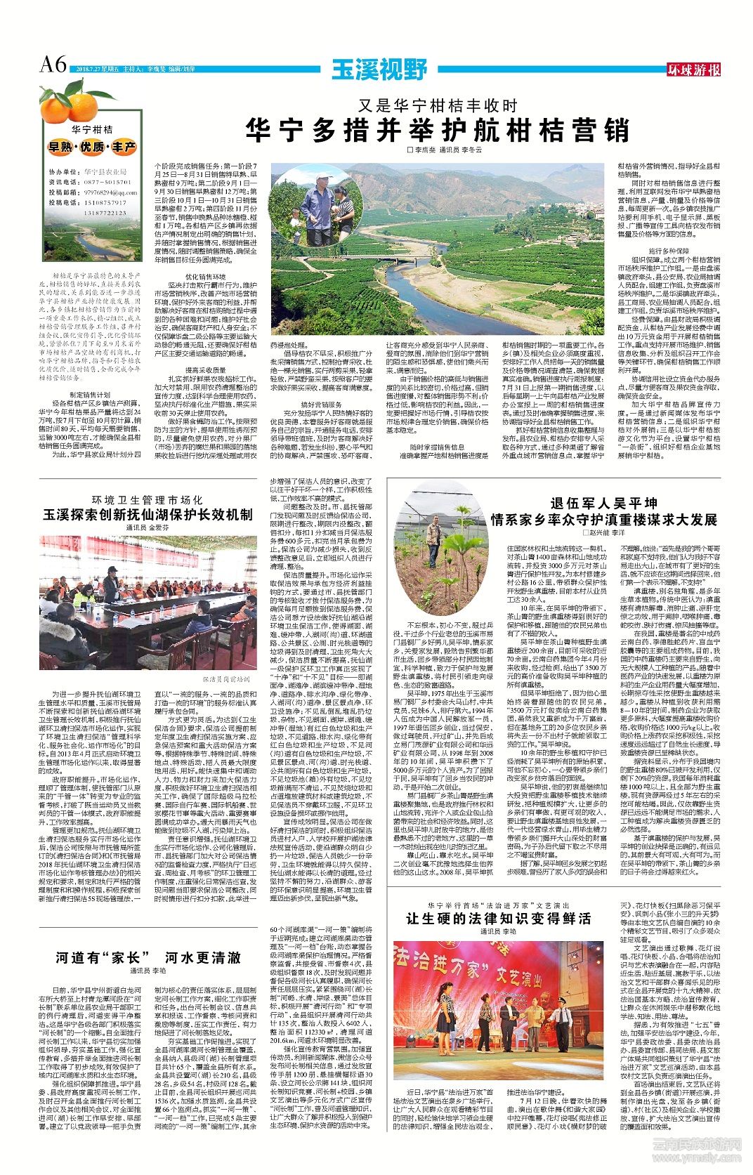 加大華寧柑桔品牌宣傳力度。一是通過新聞媒體發(fā)布華寧柑桔營銷信息;二是組織華寧柑桔對外展銷;三是以華寧柑桔旅游文化節(jié)為平臺,設(shè)置華寧柑桔“一條街”,組織好柑桔企業(yè)基地展銷華寧柑桔。(文章來源環(huán)球游報2018年7月27日第1150期A6版)