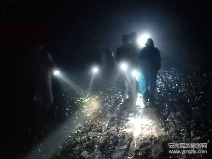 漆黑的環(huán)境伴隨著厚厚的濃霧,給在羊腸鳥道中穿行的搜救民警增加了困難。同時(shí),穿行中,搜救民警還要時(shí)時(shí)查看著手機(jī)有無(wú)信號(hào),以便于能夠及時(shí)聯(lián)系到姜某某。