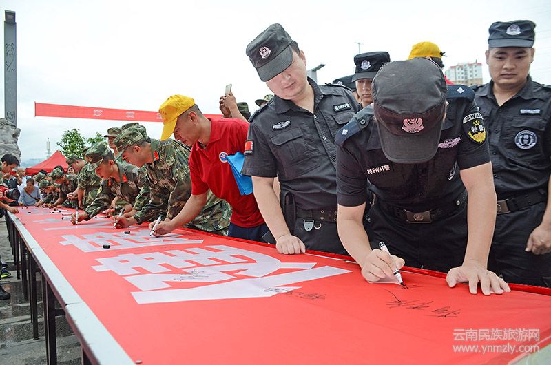 “我是中華民族的兒女,不忘恥辱,堅決與毒魔作斗爭,珍愛生命,拒絕毒品,保證不吸毒、不販毒、不制毒、不種毒,積極檢舉吸販毒行為,自覺抵御毒品的侵蝕,積極投身于禁毒斗爭行列……”6月26日上午,一場聲勢浩大的禁毒宣傳活動在瑞麗市弄莫湖公園舉行,來自全市各行各業(yè)的志愿者高聲宣誓禁毒誓言。