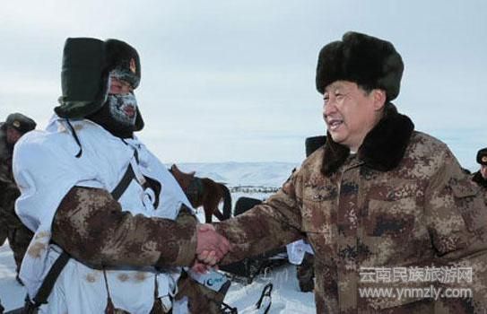 2014年1月26日,習(xí)近平來到祖國邊疆的內(nèi)蒙古阿爾山,冒著零下30多度的嚴(yán)寒慰問在邊防線上巡邏執(zhí)勤的官兵。來源:新華社
