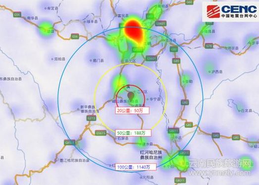 云南網(wǎng)訊 8月13日凌晨01時(shí)44分24秒,云南玉溪市通??h發(fā)生5.0級(jí)地震,震中位于北緯度24.19°,東經(jīng)度102.71°,震源深度7千米。震中距通??h10公里、距江川區(qū)12公里、距華寧縣22公里、距紅塔區(qū)25公里、距峨山彝族自治縣31公里,距玉溪市24公里,距昆明市95公里。 據(jù)移動(dòng)人口大數(shù)據(jù)分析,震中20公里范圍內(nèi)人口數(shù)約50萬,50公里范圍內(nèi)約188萬,100公里范圍內(nèi)約1140萬。