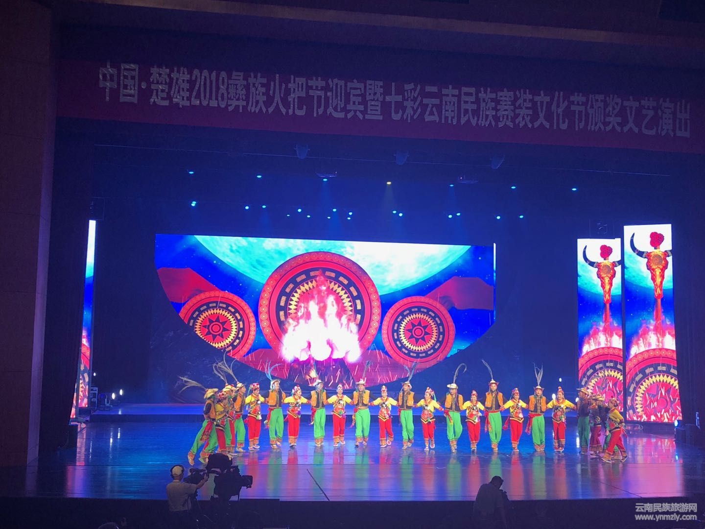 4日晚,七彩云南2018民族賽裝文化節(jié)頒獎(jiǎng)暨中國(guó)·楚雄彝族火把節(jié)迎賓文藝演出在楚雄彝州大劇院舉行。