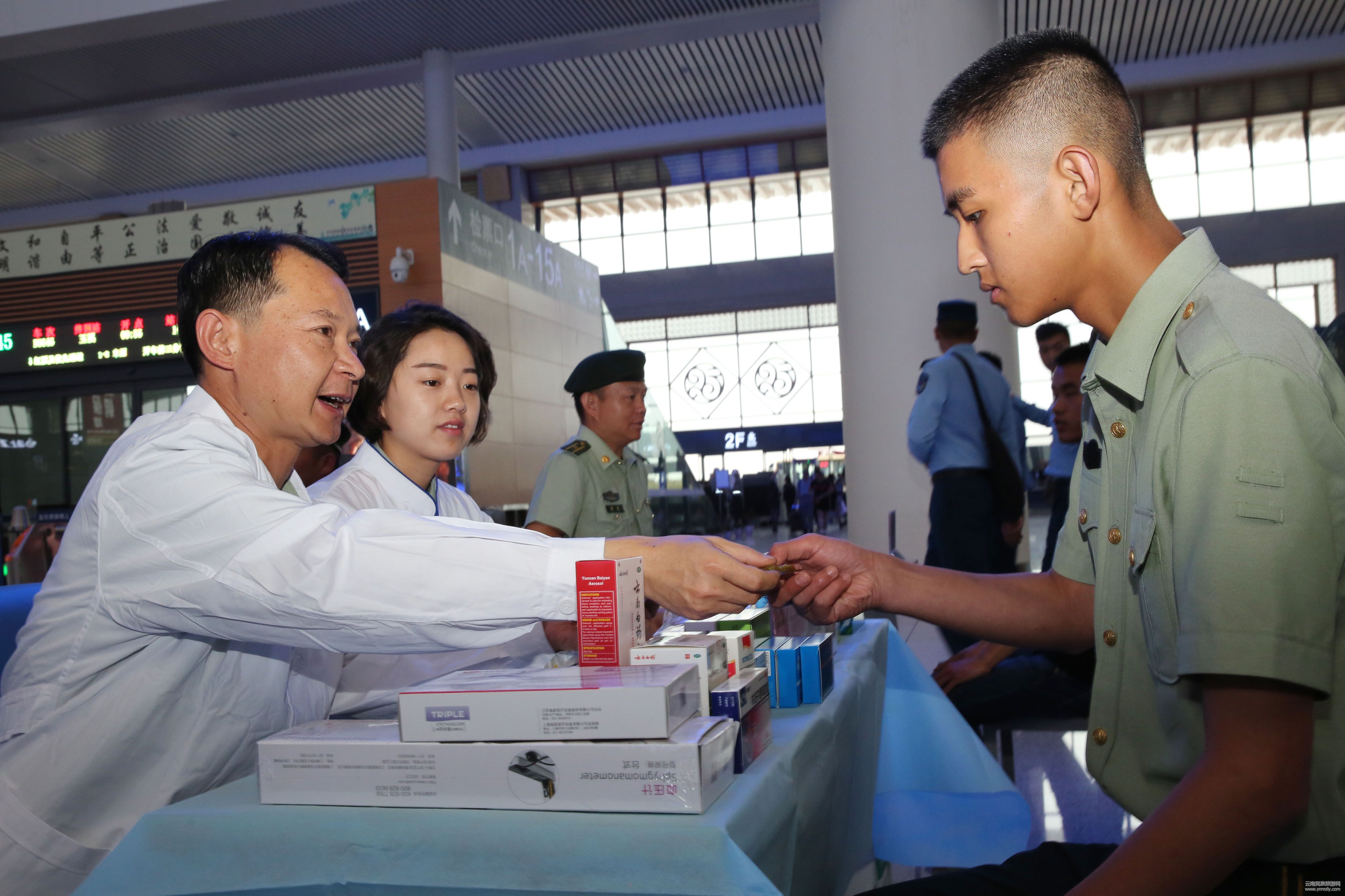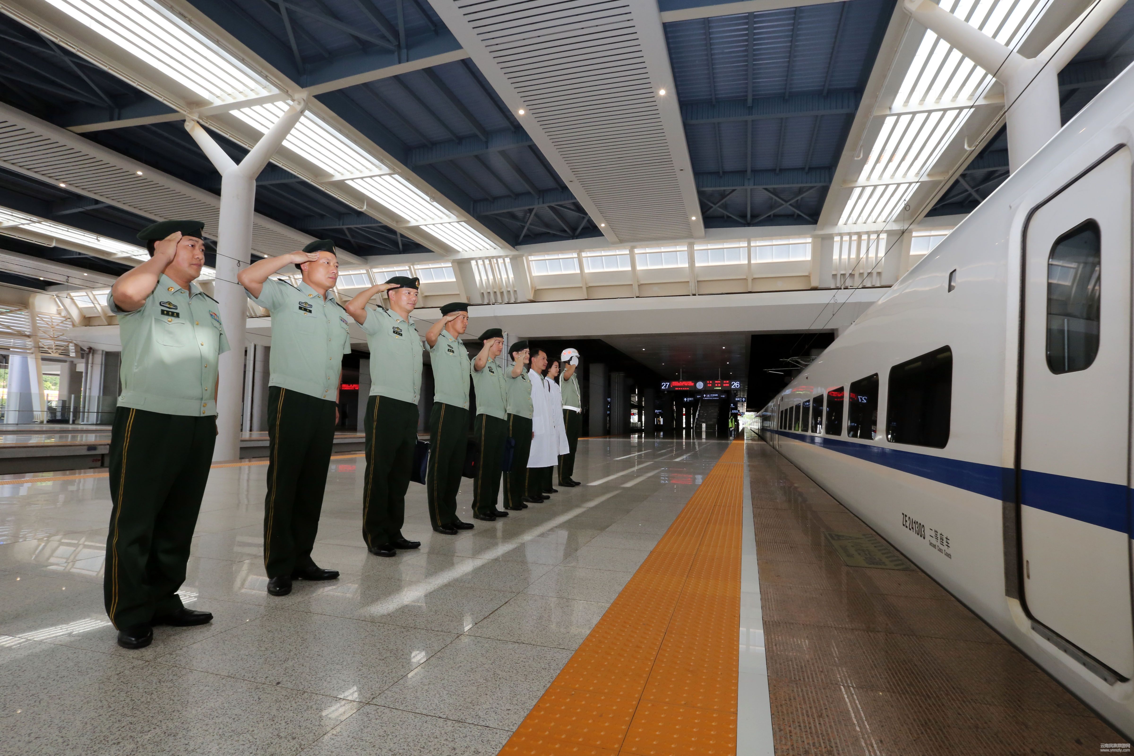 在昆明長水國際機(jī)場、昆明高鐵站、昆明火車站,一支由部隊(duì)黨委領(lǐng)導(dǎo)帶隊(duì)的戰(zhàn)友團(tuán),分別來到卸下警銜的退伍老兵中間,與即將離滇的退伍老兵一一握手話別,送去部隊(duì)黨委的關(guān)懷和溫暖。候機(jī)(車)大廳、火車站臺(tái)、列車車廂里,處處充滿了濃濃的戰(zhàn)友離情別意。退伍老兵情不自禁地和送別戰(zhàn)友緊緊擁抱,互訴衷腸、彼此祝福、共話離別。