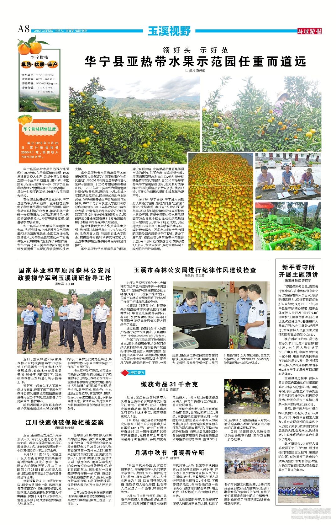 華寧縣亞熱帶水果示范園于2004年被國家農(nóng)業(yè)部評(píng)為“南亞熱帶作物名優(yōu)基地”,于2005年列為全縣柑橘標(biāo)準(zhǔn)化生產(chǎn)示范基地,于2015年建成市級(jí)柑橘莊園,于2016年被玉溪市列為柑橘危險(xiǎn)性病蟲害(黃龍病、潰瘍病、木虱、柑橘小實(shí)蠅)動(dòng)態(tài)監(jiān)測(cè)點(diǎn),同年建成自動(dòng)氣象監(jiān)測(cè)站,為華溪鎮(zhèn)柑橘生產(chǎn)管理提供氣象保障。2017年與云南農(nóng)業(yè)大學(xué)簽訂科技合作戰(zhàn)略協(xié)議,2018年縣政府與云南農(nóng)業(yè)大學(xué)、云南省高原特色農(nóng)業(yè)產(chǎn)業(yè)研究院簽訂縣??萍己献鲬?zhàn)略框架協(xié)議,現(xiàn)已開展《柑橘根部灌溉》、《柑橘果園免耕》、《柑橘早花誘導(dǎo)》等六項(xiàng)試驗(yàn)。