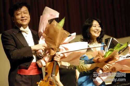 2006年盛中國(guó)和夫人瀨田裕子在昆奏響“‘深情云南 愛(ài)在中國(guó)’”盛中國(guó)、瀨田裕子小提琴、鋼琴音樂(lè)會(huì)” 。(圖片來(lái)源于網(wǎng)絡(luò))
