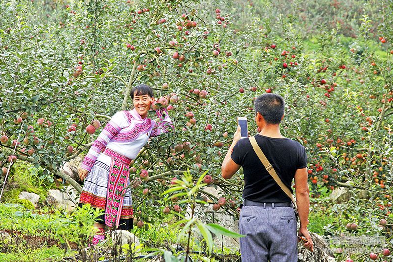 立秋不久,蒙自市西北勒遠(yuǎn)未呈現(xiàn)白云飛、草木黃、雁南歸的景象,唯有黝黑的農(nóng)戶在地里彩繪,金黃的萬(wàn)壽菊在山間點(diǎn)綴,羞紅的蘋果在枝頭酣睡。