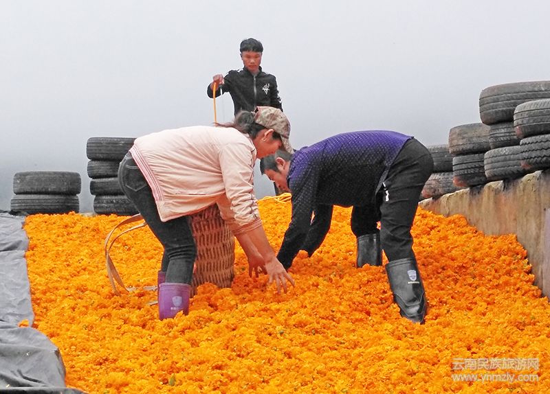 萬壽菊種植是近些年丘北縣大力發(fā)展的一項助農增收產業(yè)。膩腳鄉(xiāng)在2011年專門引進了丘北縣立達爾農業(yè)開發(fā)有限責任公司,負責全鄉(xiāng)乃至全縣的萬壽菊收購和粗加工。每公斤收購價1元,今年預計在膩腳鄉(xiāng)周邊,僅收購萬壽菊鮮花就能達到55000噸。