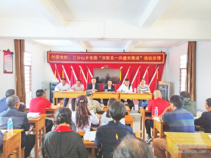 為認(rèn)真貫徹落實(shí)黨的十九大精神和德宏州委州政府關(guān)于進(jìn)一步加強(qiáng)“掛包幫”“轉(zhuǎn)走訪”定點(diǎn)扶貧工作,“雙聯(lián)系一共建雙推進(jìn)”相關(guān)要求,扎實(shí)做好“掛包幫”“轉(zhuǎn)走訪”工作,德宏州委黨校聯(lián)合芒市三臺山德昂族鄉(xiāng)黨委政府,充分利用開展第36個民族團(tuán)結(jié)月宣傳活動之際,結(jié)合實(shí)際開展了一系列的活動。首先是請州委黨校的教授開展了民族團(tuán)結(jié)道德大講堂講座;其次是召集鄉(xiāng)黨委政府班子、村兩委和建檔立卡戶共同對脫貧攻堅(jiān)效果結(jié)合實(shí)際,認(rèn)真做了分析研討;第三是按照有工作方案、有結(jié)對共建協(xié)議、有活動記錄,有脫貧攻堅(jiān)效果的目標(biāo),對“雙聯(lián)系一共建雙推進(jìn)”做了安排。同時,還開利用發(fā)放宣傳單、張榜宣傳欄開展了反邪教宣傳?;顒又?,還邀請了德宏州創(chuàng)建全國民族團(tuán)結(jié)進(jìn)步示范州領(lǐng)導(dǎo)小組辦公室、德宏州民族宗教事務(wù)局相關(guān)領(lǐng)導(dǎo)參加了活動。在活動間隙,德宏州委黨校的全體教職工還到各自的掛鉤戶家中走訪,了解掛鉤戶的生產(chǎn)生活情況。