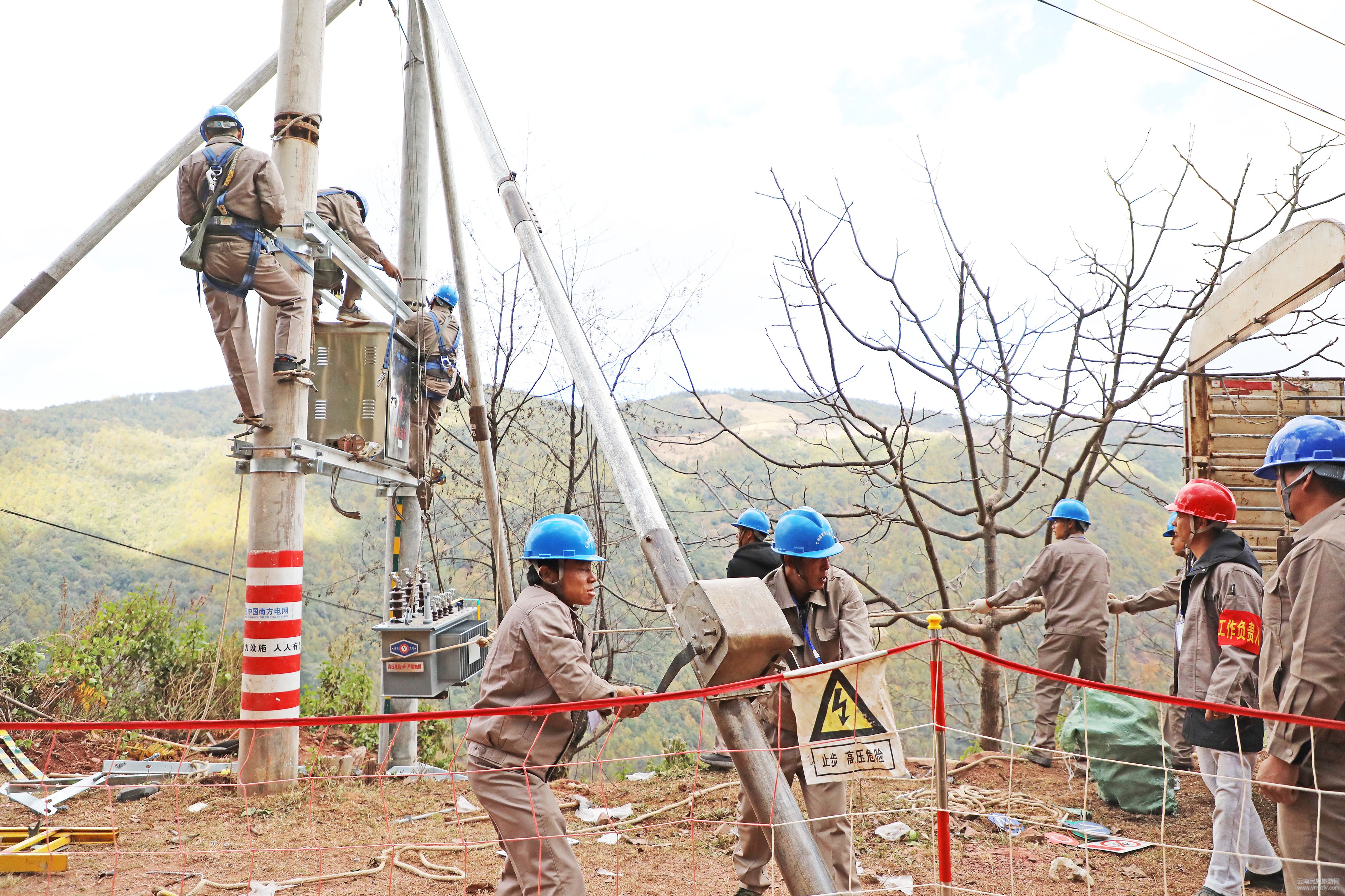 施工現(xiàn)場,有一個身影一直在場監(jiān)督、指揮,他是大理漾濞供電局計劃建設部主任常學洪。他說:“這個項目主要是解決自然村通動力電的問題,三相變壓器安裝好以后,用戶需要用三相電就可以到我們供電所來報裝,我們就免費為用戶安裝三相動力電表,給群眾用上安全電、放心電。”