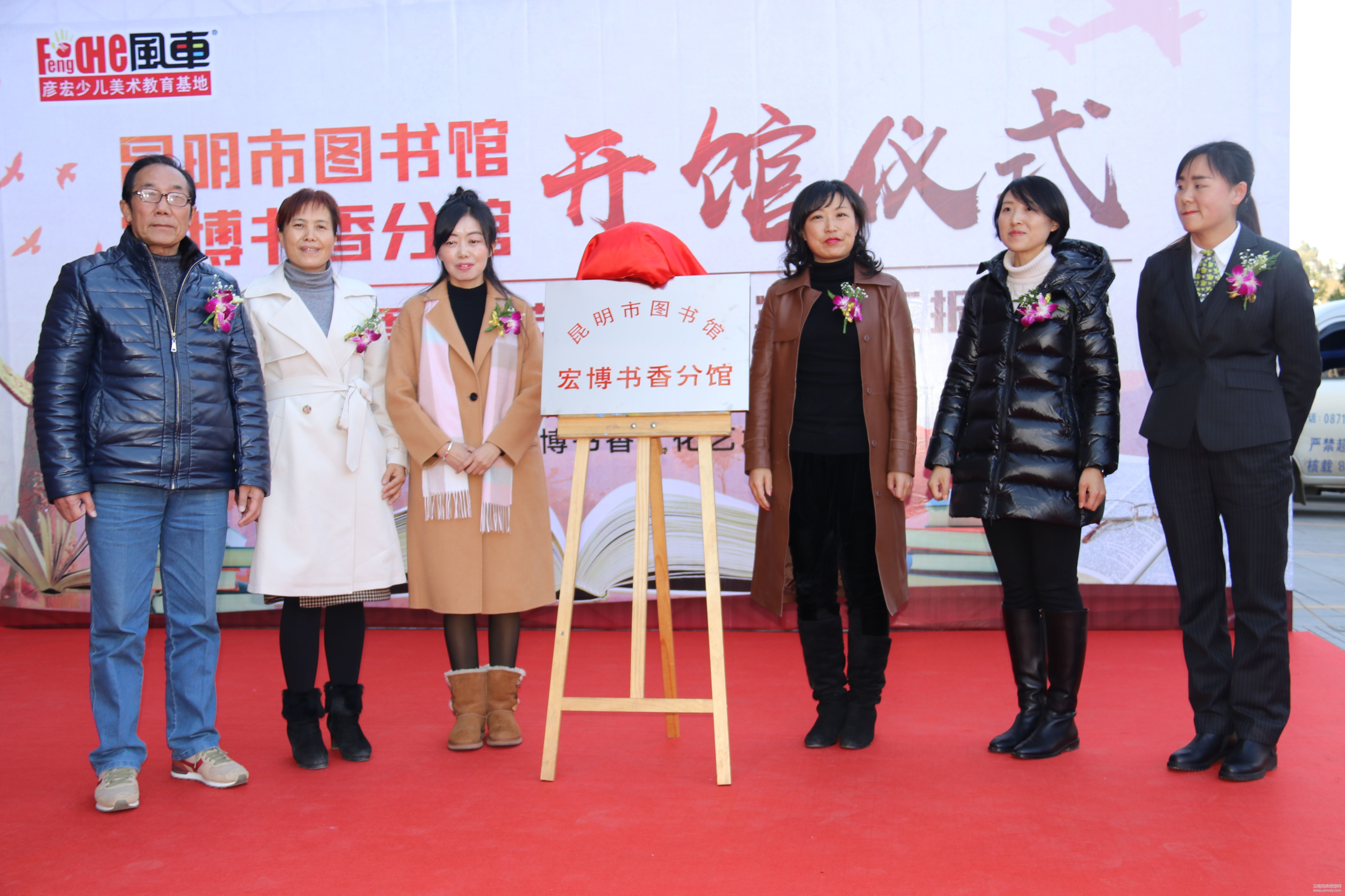 1月23日,昆明市圖書(shū)館宏博書(shū)香分館在司家營(yíng)街昆明宏博書(shū)香文化藝術(shù)學(xué)校舉行開(kāi)館儀式并揭牌,昆明市圖書(shū)館外借部主任彭黔,昆明市圖書(shū)館外借部副主任王建斌,龍泉街道街道盤江社區(qū)書(shū)記吳其華,昆明宏博書(shū)香文化藝術(shù)學(xué)校校長(zhǎng)、風(fēng)車彥宏美術(shù)教育基地創(chuàng)始人劉彥宏出席。