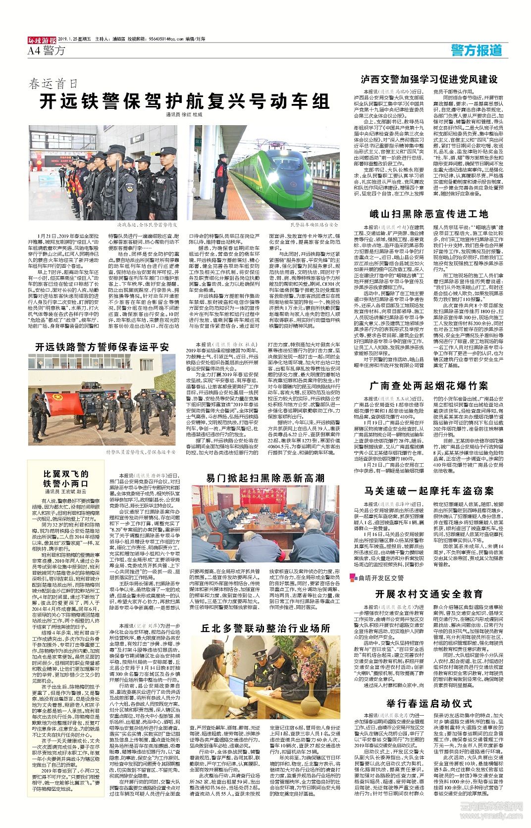 本報訊(通訊員 張競月)為進一步加強春運期間道路交通安全管理工作,近日,曲靖市公安局開發(fā)區(qū)交警大隊在轄區(qū)大花橋公園,舉行了以“平安春運 交警同行”為主題的2019年春運交通安全啟動儀式。