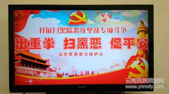 2月21日開始,在云南廣電網(wǎng)絡集團紅河分公司數(shù)字紅河頻道全力開展掃黑除惡宣傳。只要用戶打開電視及機頂盒,開機畫面顯示“開展掃黑除惡攻堅戰(zhàn)專項斗爭”、“出重拳、掃黑惡、促平安”、“深挖黑惡勢力保護傘”字幕,隨后,進入主菜單和頻道列表菜單時,兩處都出現(xiàn)設置有 “開展掃黑除惡、建設平安蒙自”、“出重拳、掃黑惡、保平安”字幕及舉報電話的掃黑除惡宣傳畫面。讓用戶在第一時間觀看到;利用字幕飛播,每天在黃金時段滾動播出掃黑除惡宣傳標語字幕19次;同時,每天在廣告時間播出長達30秒的蒙自市公安局掃黑除惡公益宣傳片18次(播放時段附后)。據(jù)官方數(shù)據(jù)顯示,“數(shù)字紅河”觀看用戶覆蓋紅河州13縣市45萬余戶約200百余萬人。“數(shù)字紅河”和蒙自電視臺將長期對上述宣傳內(nèi)容進行反復播放。