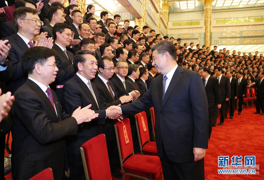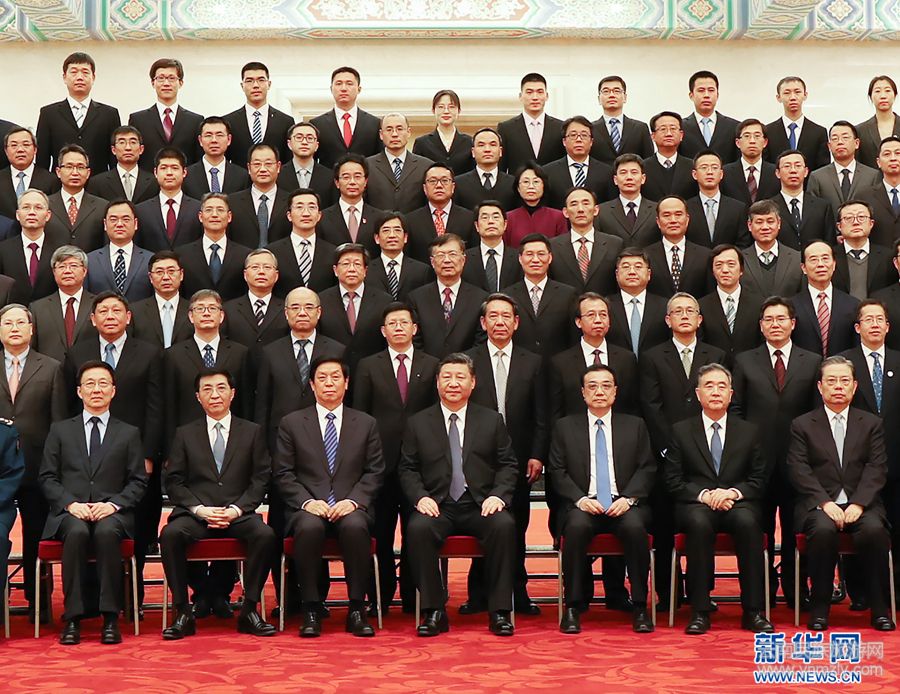 2月20日,黨和國家領(lǐng)導(dǎo)人習(xí)近平、李克強(qiáng)、栗戰(zhàn)書、汪洋、王滬寧、趙樂際、韓正等在北京人民大會堂會見探月工程嫦娥四號任務(wù)參研參試人員代表。 新華社記者鞠鵬攝