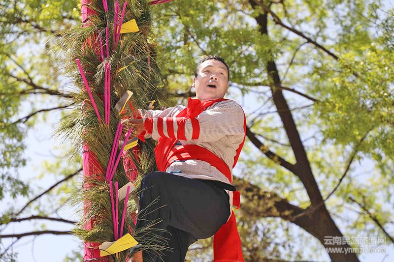 3月14日是農(nóng)歷二月初八,也是傈僳族的盛大節(jié)日——刀桿節(jié),這天,漾濞縣漾江鎮(zhèn)三廠局村民小組的廣場上,數(shù)百名傈僳族群眾和近千名遠(yuǎn)近幾十里的各族群眾歡聚一堂,舉行爬刀桿及文藝表演活動,共慶佳節(jié)。