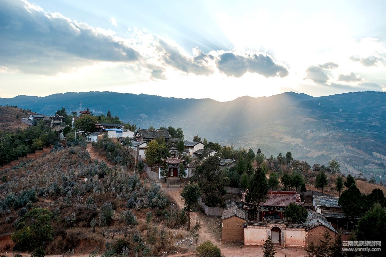 據(jù)介紹,西邊大寺位于南詔國山龍山于圖山城址所在地,山龍山于圖山城址位于巍山縣城西北十五公里,在今廟街鎮(zhèn)云鶴村委會龍宇村,面積約100000平方米。城址后依大黑山,前臨陽瓜江,山環(huán)水抱,易守難攻,地勢險要,站在山頂眺望,整個巍山壩子盡收眼底。