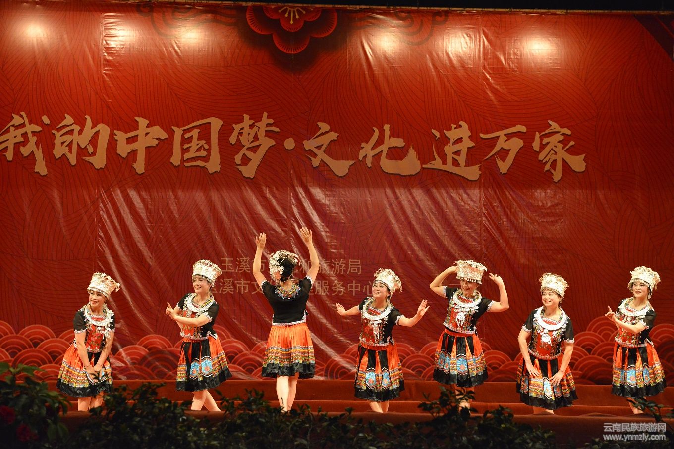 為彰顯紅河民族文化,傳播民族傳統(tǒng)舞蹈,突出社會主義核心價值觀,弘揚新時代和諧中國民族團結(jié)進步的主旋律,個舊蕎麥花藝術(shù)團帶去了在云南省全省推廣的廣場舞《馬櫻花》、哈尼族舞蹈《嘎呢呢木槎槎》、彝族舞蹈《繡秀》和《俏彝娘》、苗族舞蹈《苗家女兒》及經(jīng)典作品《和諧大中國》及《再見吧,媽媽!》等10個節(jié)目參加演出,贏得玉溪觀眾的喜愛和贊賞。