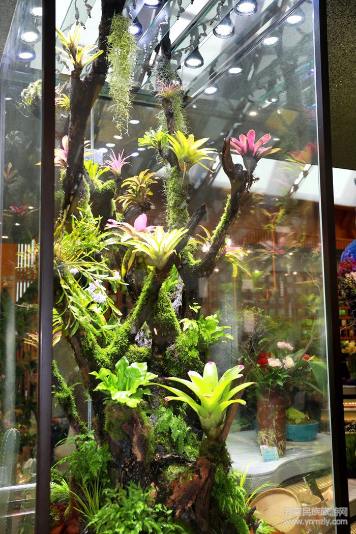 靠近它,整個人仿佛置身在雨林中,享受著陽光和綠植的滋養(yǎng)。孔雀是云南的名片,云南館當(dāng)然也少不了它的身影。以各色鮮切花,插花,及花卉工藝品為主打造的充滿繽紛色彩的孔雀花藝,姿態(tài)旖旎,栩栩如生。后續(xù)還將呈現(xiàn)不同主題的花卉、花藝、盆景等展品。