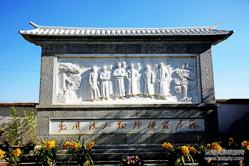 浮雕高4.8米、長7.5米,材質(zhì)為漢白玉。浮雕根據(jù)歷史資料記載和保存的圖片資料,以1920年初王復(fù)生、鄧中夏、羅章龍等志士仁人,于北京陶然亭歡送赴京開展革命活動返湘的毛澤東合影照為素材,由王復(fù)生烈士女兒王智中、怡志園負(fù)責(zé)人趙瑞昌、大波那愛心人士張如武共同出資,大理耘天工作室楊偉設(shè)計,工匠劉高武雕刻,配以《天地?zé)o私山河有源》《華夏英杰一門三雄》石刻銘文,構(gòu)成了有機聯(lián)系渾然一體的紅色文化群雕。