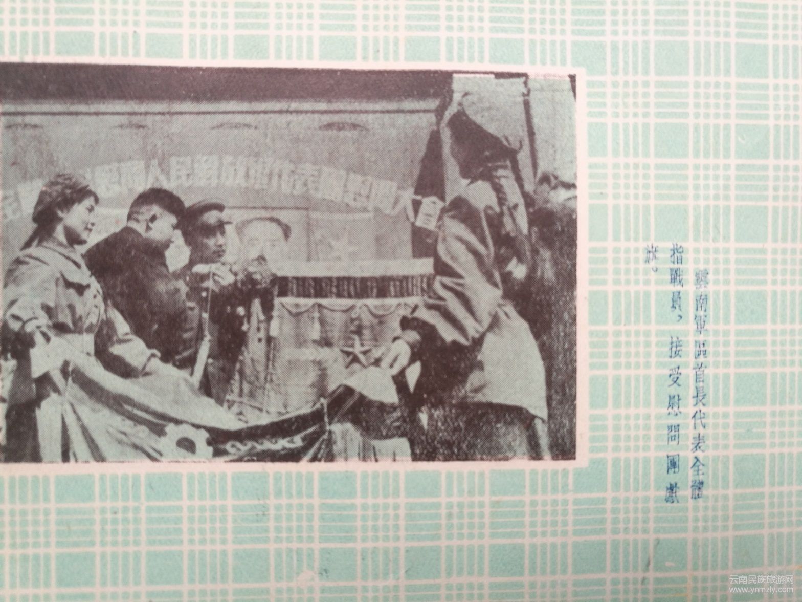 王從吾副總團(tuán)長、蔡樹藩副總團(tuán)長、志愿軍代表團(tuán)王永年副總團(tuán)長等由軍區(qū)首長陪同,從金碧路向近日樓歡迎臺行進(jìn):來自朝鮮前線的志愿軍文工隊隊員同志,受到了熱烈歡迎;王從吾副總團(tuán)長代表全國人民慰問解放軍代表團(tuán)向云南軍區(qū)廣大指戰(zhàn)員傳達(dá)了黨中央、中央人民政府、毛主席和全國人民的親切關(guān)懷和問候;志愿軍代表團(tuán)王永年副總團(tuán)長講話;志愿軍文工隊演出‘’歡迎舞‘’;慰問團(tuán)各劇團(tuán)的全體同志,不顧疲勞,連日給駐昆部隊進(jìn)行慰問演出,表演他們最優(yōu)秀的節(jié)目;慰問團(tuán)來到有著20多年光榮斗爭經(jīng)驗的‘’紅軍團(tuán)‘’,王從吾副總團(tuán)長談到毛主席時刻惦念著邊疆戰(zhàn)士們的時候,‘’紅軍團(tuán)‘’團(tuán)長、戰(zhàn)斗英雄顧永武的臉上露出了感動的興奮的笑容:慰問團(tuán)深入高寒山區(qū)慰問堅守一線的戰(zhàn)士等等。