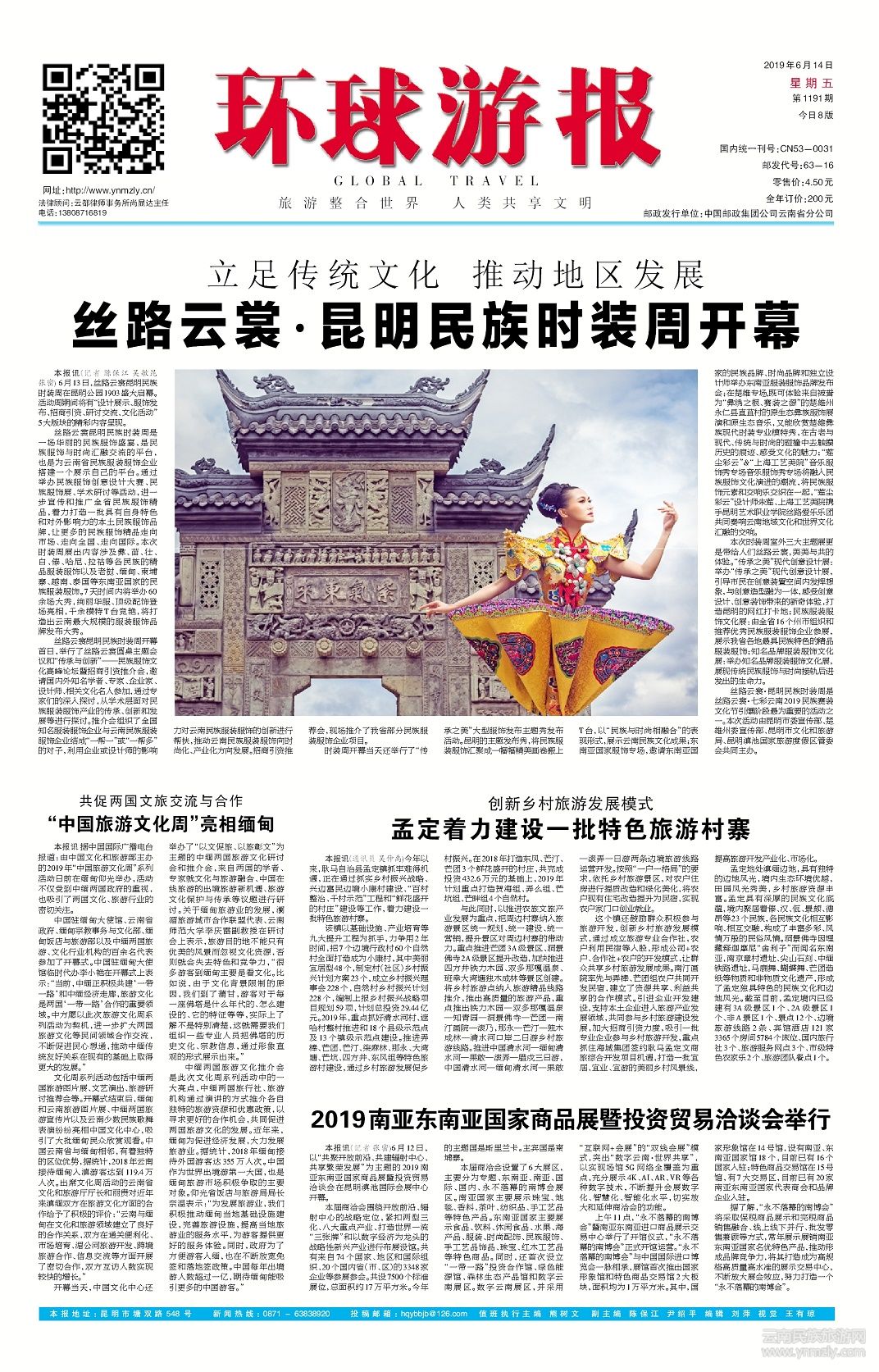 絲路云裳·昆明民族時裝周是絲路云裳·七彩云南2019民族賽裝文化節(jié)引爆階段最為重要的活動之一。本次活動由昆明市委宣傳部、楚雄州委宣傳部、昆明市文化和旅游局、昆明滇池國家旅游度假區(qū)管委會共同主辦。(文章來源環(huán)球游報2019年6月14日第1191期A1版)