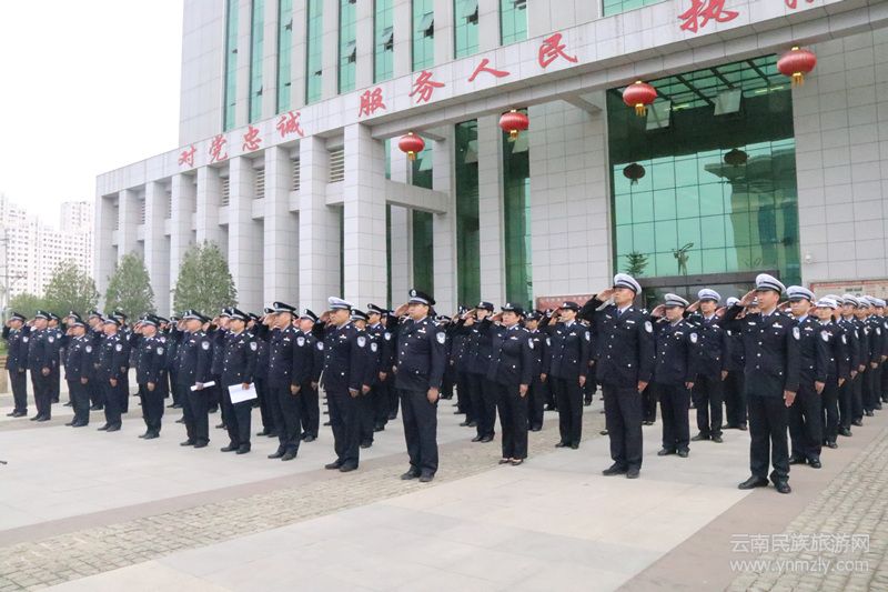 儀式上,全體民警、輔警身著戎裝、胸戴黨徽、整齊列隊(duì)佇立在國(guó)旗下。上午9時(shí),隨著主持人“升旗儀式開始”的口令,雄壯的國(guó)歌聲響起,鮮艷的五星紅旗冉冉升起,隨風(fēng)飄揚(yáng),全體人員面向國(guó)旗敬禮。隨后,李明奎政委發(fā)表了講話。