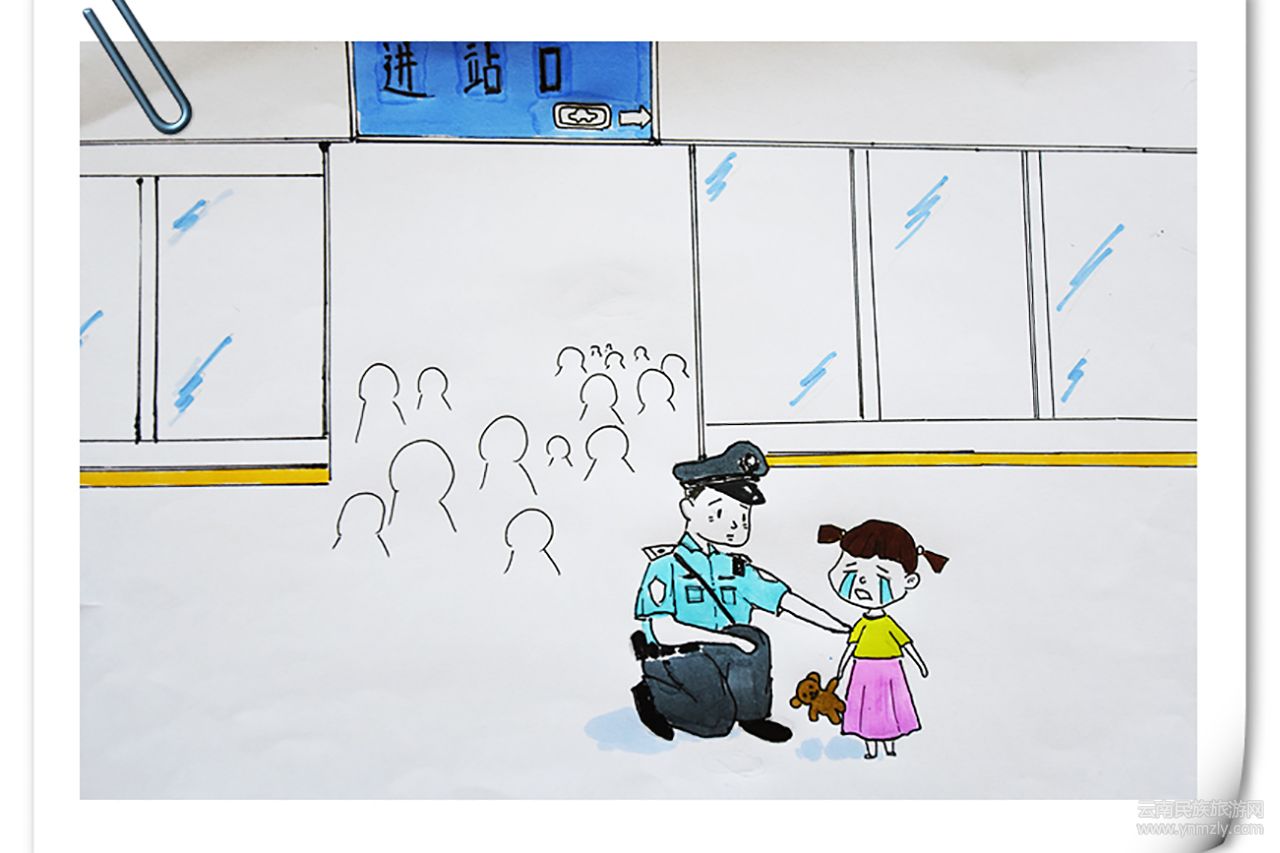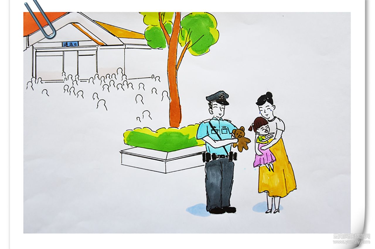 隨著暑假到來,客流激增,開遠鐵路公安處各車站派出所受理旅客求助尋找小孩的警情也與日俱增。為不再讓迷途幼童與家人分離,開遠鐵路公安處90后民警杜威以此為創(chuàng)作原型,結合當前開展的“平安站車路 金盾護你行”專項行動,創(chuàng)新宣傳模式,將乘車安全知識繪制成旅客群眾喜聞樂見、簡潔深刻的漫畫,暖心提醒旅客出行安全。