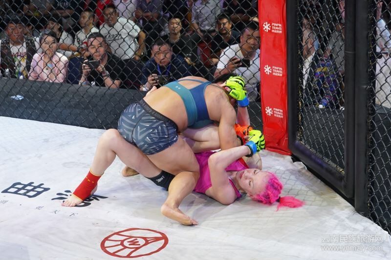 激動人心的壓軸賽是第八場,中國MMA新星廣南“鐵姑娘”嚴(yán)啟慧對戰(zhàn)俄羅斯選手莉莉亞。莉莉亞來自“戰(zhàn)斗民族”的俄羅斯,大賽經(jīng)驗(yàn)豐富,出手果敢,尤其以詭異嫻熟的腿法稱霸拳壇,在備戰(zhàn)過程中,嚴(yán)啟慧與其團(tuán)隊(duì)精心研究戰(zhàn)術(shù),針對性的進(jìn)行訓(xùn)練。比賽一開始,“鐵姑娘”便發(fā)動猛烈進(jìn)攻,一頓拳腿組合,很快在籠邊拿到斷頭臺把位,一頓膝擊組合攻擊,相當(dāng)給力。莉莉亞主動選擇進(jìn)入地面,但被嚴(yán)啟慧壓制在地面,遭到不少砸擊。嚴(yán)啟慧又是打出一波連擊,打摔結(jié)合的很好,將對手摔倒后,牢牢壓制地面,拳肘不斷砸在對手身上。在打擊數(shù)上,比分遙遙領(lǐng)先。最后一個回合,沮喪的莉莉亞完全失去了斗志,在籠邊遭受更多打擊后,裁判眼見莉莉亞毫無還手表現(xiàn),便終止了比賽。在第三回合,3分48秒,嚴(yán)啟慧取得獲勝?,F(xiàn)場尖叫聲不斷,掌聲經(jīng)久不息。