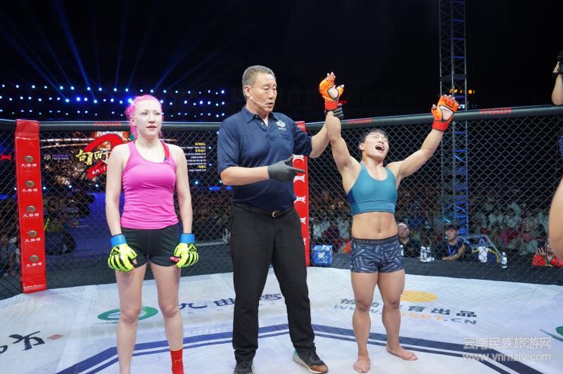 云南民族旅游網(wǎng)訊(記者 吳敏昆 攝影 徐俊)9月7日晚8點(diǎn),第二屆中國•廣南“句町拳王”國際金腰帶爭霸賽——決戰(zhàn)2019脫貧攻堅(jiān)公益專場在云南省廣南縣民族體育場勁爆開賽。由8名MMA搏擊手迎戰(zhàn)來自泰國、俄羅斯等多個國家的選手,壓軸賽中國MMA新星廣南“鐵姑娘”嚴(yán)啟慧對戰(zhàn)俄羅斯選手莉莉亞取得了勝利,并把自己所獲得的拳王金腰帶現(xiàn)場拍賣獲得的45萬元現(xiàn)場捐贈用作公益事業(yè),而本場比賽義買資金高達(dá)277萬元,門票收入為120.6萬元全部捐贈給廣南縣脫貧組委會用于開展脫貧工作。
