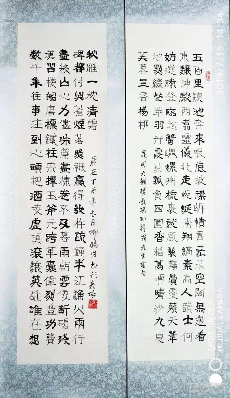 2019年6月,在參加中國(guó)書(shū)法陶瓷評(píng)委會(huì)等三個(gè)單位組織的全國(guó)建國(guó)七十周年《中華頌》書(shū)畫(huà)大賽中,隸書(shū)《昆明大觀樓長(zhǎng)聯(lián)》榮獲全國(guó)書(shū)法大賽“金獎(jiǎng)”,同時(shí)被授予“人民杰出藝術(shù)家”榮譽(yù)稱號(hào),被收藏界認(rèn)定為二級(jí)書(shū)法師,作品備受?chē)?guó)內(nèi)外人士青睞。