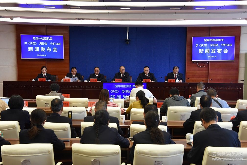云南民族旅游網(wǎng)訊(記者 陳永華 通訊員 普文乾)2019年10月10日上午,楚雄州人民檢察院同全省檢察機關(guān)同步召開“學《決定》,見行動,守護公益”主題新聞發(fā)布會,專題發(fā)布楚雄州檢察機關(guān)充分履行公益訴訟檢察職能,切實服務(wù)和保障楚雄生態(tài)文明建設(shè)的有關(guān)情況。楚雄州人民檢察院黨組成員、副檢察長李光俊進行新聞發(fā)布,州檢察院第八檢察部負責人劉曉波,楚雄市人民檢察院黨組書記、檢察長李全華,祿豐縣人民檢察院黨組書記、檢察長劉和貴,大姚縣人民檢察院黨組書記、檢察長普應(yīng)聰出席發(fā)布會并回答記者提問,州檢察院、部分縣(市)院公益訴訟部門干警到場聆聽。