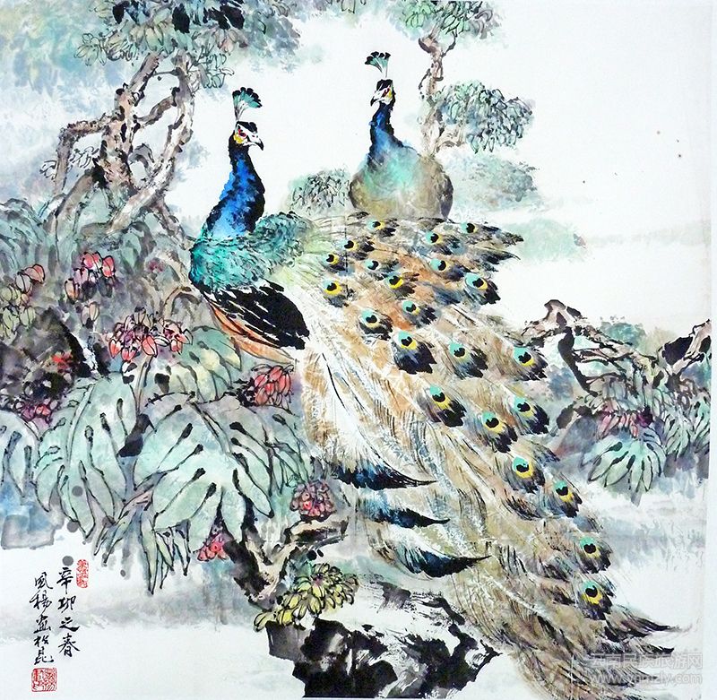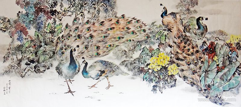 有評(píng)論說(shuō):“在寫(xiě)意孔雀繪畫(huà)上,袁曉岑先生是當(dāng)代寫(xiě)意孔雀創(chuàng)始人,是中國(guó)花鳥(niǎo)畫(huà)的鋪路者,是一座無(wú)法逾越的高山;袁先生的一名弟子也表現(xiàn)不俗;再一人當(dāng)之無(wú)愧是嚴(yán)風(fēng)楊先生。”我認(rèn)同這一評(píng)論。