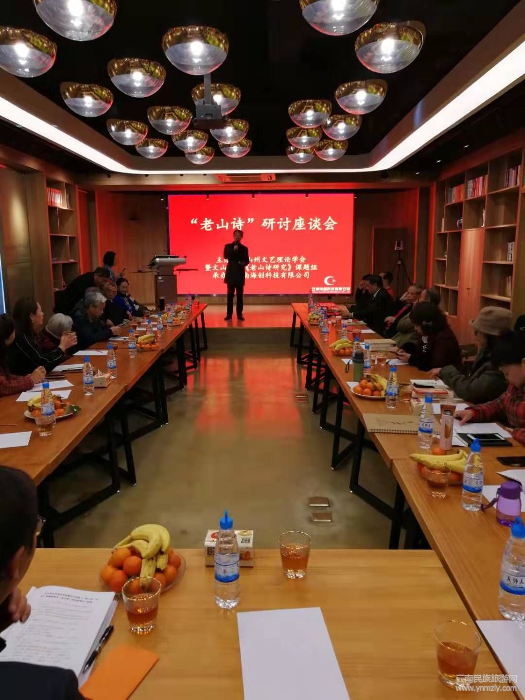 云南民族旅游網(wǎng)訊(環(huán)球觸融媒體平臺記者 趙建云)12月22日,由文山州文藝?yán)碚搶W(xué)會、文山學(xué)院老山詩課題組主辦,云南海創(chuàng)科技有限公司承辦,以“弘揚老山精神,傳承紅色文化”為主題的《“老山詩”研討座談會》在昆明舉行。來自云南省內(nèi)的文藝評論家、作家、詩人、教授等30余人參加了研討座談會。著名詩人曉雪為研討課題組題詞“最美老山詩,最深戰(zhàn)山情”,并贈送他創(chuàng)作的《老山詩》12首,同時現(xiàn)場朗誦他40年前創(chuàng)作的老山詩,贏得了與會者的片片掌聲。值得一提的是,研討座談會的成功舉辦,還引起了中國作協(xié)副主席、曾在云南從軍的著名詩人高洪波的關(guān)注與點贊。這將昭示著老山詩研究,會迎來一個嶄新的春天。研討座談會由文山州文藝學(xué)會會長王立輝主持。